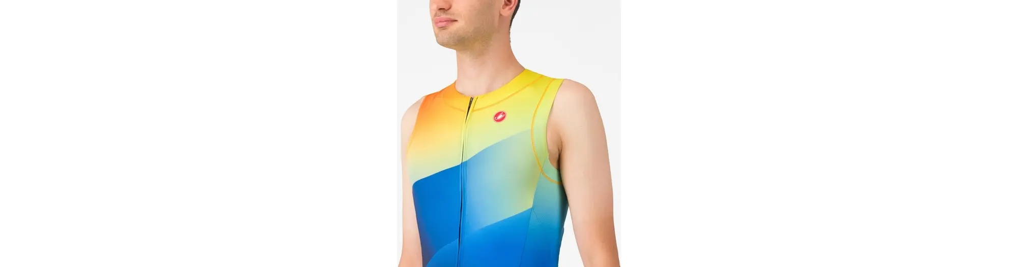 Description Combinaison sans manches Free Sanremo 3Il ne s’agit pas d’une simple mise à niveau. Ce modèle révolutionne notre combinaison Free Sanremo Suit sans manches.Une véritable évolution de notre combinaison emblématiquePlacement du tissu et réalisation des coutures basés sur la simulation CFDPoche à glace intérieure au niveau du cou pour garder votre température corporelle basse dans les conditions les plus chaudesRecouvrement en tissu doux aux emmanchures pour éviter les frottementsTissu du corps léger pour un niveau optimal de refroidissement, de respirabilité et de confortLes 2 poches arrière restent bien à plat et maintiennent parfaitement vos en-casL’ouverture frontale Sanremo de Castelli permet de se pencher facilement pour pédaler et de se redresser pour courir et nager, tout en facilitant les pauses pipi ou l’ouverture par temps très chaudJambes en tissu extensible Forza2 à l’aérodynamisme optimisé, pour un confort maximal et d’excellentes propriétés aérodynamiquesBandes de maintien en silicone pour maintenir le bas des jambes en placePeau de chamois KISS Tri qui vous offre un excellent confort à vélo et que vous ne sentirez presque pas en courantUPF xPoids :230 gTempérature :15°C – 40°C / 59°F – 104°FCoupe : RaceSpécifications techniques :UniversRouteGenreHommeAnnée2025UsageRouteSaisonÉtéLongueurManches courtesCaractéristiquesRespirant