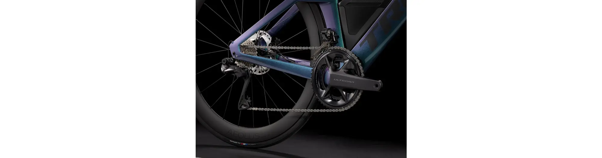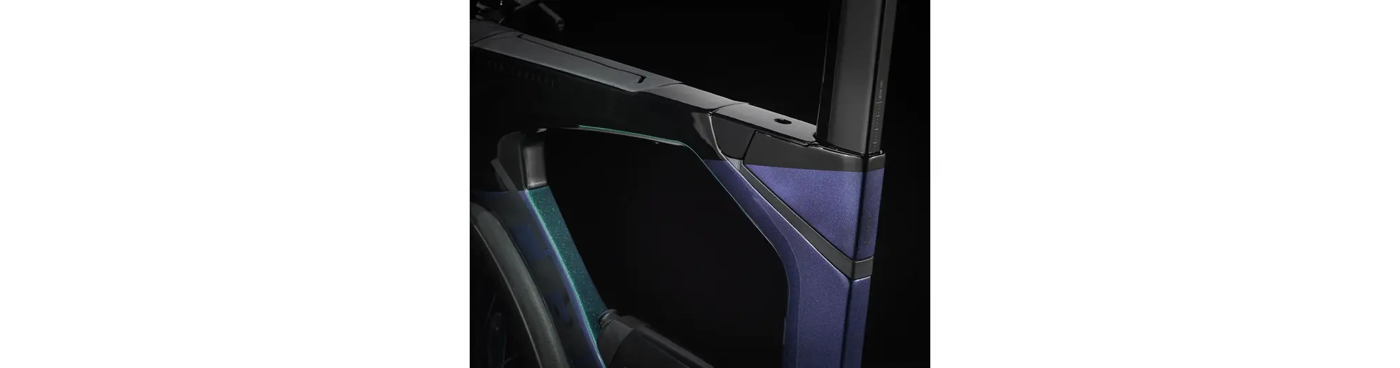 Description Speed Concept SLR 7Le Speed Concept SLR 7 est un vélo de triathlon aérodynamique en carbone conçu pour atteindre une vitesse incroyable et qui accorde une grande place à l’intégration transparente. Le moindre aspect de ce vélo, depuis le cadre aérodynamique léger jusqu’à la technologie IsoSpeed qui améliore le confort en passant par les systèmes de point de gestion de l’alimentation et de l’hydratation, a été minutieusement développé pour vous permettre de battre vos records personnels encore et encore.Ceci vous convient si…Vous vous donnez à fond et vous recherchez un vélo de triathlon qui possède la même attitude. Vous recherchez la vitesse aérodynamique maximale, une transmission électronique sans fil Shimano Ultegra pour des changements de vitesse précis et une multitude d’accessoires intégrés qui simplifient la gestion de l’hydratation et de l’alimentation en course.Technologies proposéesCadre en carbone OCLV Série 800 ultraléger, tubes Kammtail Virtual Foil (KVF) aérodynamiques, fourche Speed Concept tout carbone, technologie IsoSpeed pour le confort, rangement intégré pour alimentation, boissons et kit anti-crevaison, transmission électronique sans fil Shimano Ultegra Di2 12 vitesses, ensemble potence/cintre entièrement intégré, selle Bontrager Hilo Comp spéciale triathlon, pour une position aérodynamique, freins à disque pour une puissance de freinage garantie et roues Bontrager Aeolus Pro 51 en carbone OCLV.Le dernier motSpeed Concept est aussi rapide qu’élégant. Son design simple et intelligent associé aux équipements intégrés vous assurera des jours de course sans stress, vous aidera à réaliser vos meilleurs chronos en selle et vous préparera pour une course à pied victorieuse. Le SLR 7 vous offre également l’amélioration des performances d’une transmission de Shimano haut de gamme et des remarquables roues de Bontrager.Pourquoi vous allez l’aimerLes rangements de ravitaillement intégrés vous donnent accès à vos ressources d’énergie simplement et sans effort, sans abandonner votre position aérodynamique.La technologie IsoSpeed, au niveau du tube horizontal, absorbe les imperfections de la route et intègre un amortisseur en élastomère pour préserver un mouvement fluide, stable et maîtrisé.Facile à monter et à déplacer : la rapidité du montage simplifie les déplacements pour participer aux courses.La transmission électronique Ultegra Di2 sans fil donne des changements de vitesse plus rapides, plus fluides et plus réactifs que jamais.Spécifications techniques :UniversRouteAnnée2025PratiqueVélo de contre-la-Montre / TriathlonModèleSpeed Concept SLR 7CadreCarbone OCLV Série 800, forme du tube KVF (Kammtail Virtual Foil), boîtier de pédalier 47 dts, boîte Bento intégrée, espace de rangement pour tube diagonal intégréTerrain de jeuRouteMatériauxCarboneFourcheSC carbone full foil, freins et potence intégrésChaineShimano Ultegra/XT M8100PédalierShimano Ultegra R8100, 52/36Pignon / Plateau52×36 // 11-30CassetteShimano Ultegra R8101, 11-30Dérailleur avantShimano Ultegra R8150 Di2Dérailleur arrièreShimano Ultegra R8150 Di2ManettesShimano Dura-Ace, levier R9180 Di2, étrier R9270Vitesses24 ( 2×12 )GammeShimano Ultegra Di2 12vRouesBontrager Aeolus Pro 51, carbone OCLV, Tubeless ReadyPneusBontrager R3 Hard-Case Lite, tringle en aramide, 120 tpi, 700×25 mmFreinsShimano Etrier R9270FreinageFrein à disque HydrauliqueDisques AV/AR (en mm)160mmGuidonSpeed Concept mid-rise bar/stemRuban de guidonRuban de guidon Bontrager Supertack PerfPotenceSpeed Concept mid-rise bar/stemSelleBontrager Hilo Comp, rails creux en chromolyTige de selleSpeed Concept SLR, déport de 11,5 mm ou 20 mmPoids8,97kg