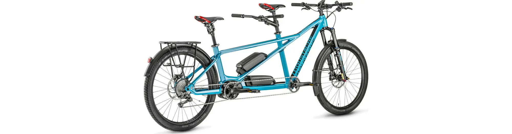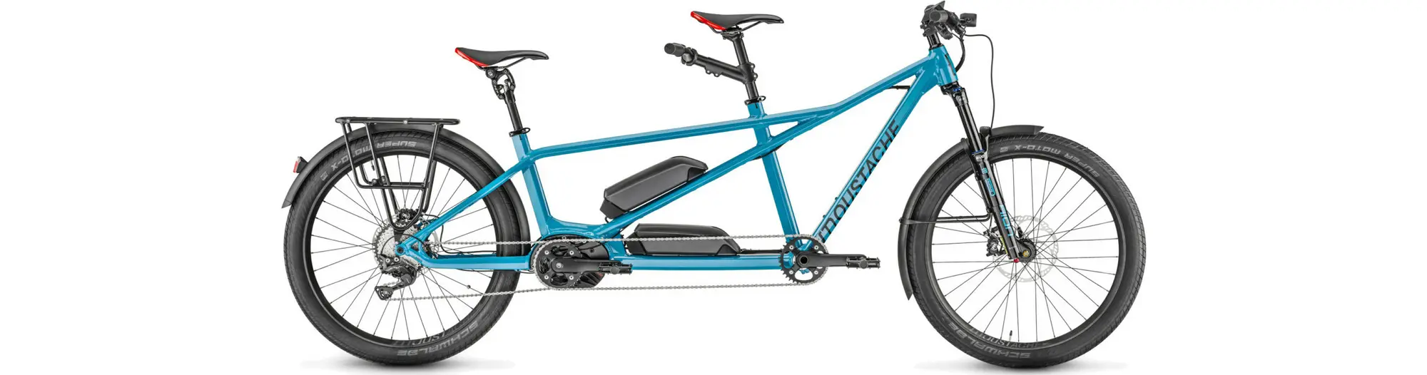 Description Samedi 27 Tandem Trekking 1000WPartager sa passion, ses émotions, partager un moment, une découverte, un voyage, un joli coin, simplement partager un moment de plaisir… les raisons d’être de notre tandem Samedi 27 X2.Spécifications techniques :UniversÉlectriqueGenreUnisexeMarqueMoustacheAnnée2023PratiqueTandem électriqueModèleSamedi 27 X2 TRKCadreAluminium 6061 T4 T6 – Tubes extrudés et hydroformés à épaisseur variable – Moteur à l’arrière – Douille de direction conique – 27.5 Plus – BoostTerrain de jeuCheminMixteVilleType de pratiqueBalade familialeMatériauxAluminiumMatériau du cadreAluminiumDébattement fourche140 mmBatterieDouble batterie BOSCH Li ION PowerPack 500 – Total : 1000WhMoteurBOSCH PerformanceType25km/hBatterie1000WhMoteurBoschGammeBosch Performance line CxChargeurBosch 4AhCompteurBosch Kiox, compact, écran couleur, Bluetooth compatible avec cardiofréquencemètre – 5 modes (Eco, Tour, eMTB, Turbo, Off) – « Walk assist »ChaineSram 11V, attache rapidePédalierManivelles Moustache aluminium forgées spécifiques Tandem, Av 175 mm, Ar 170 mm, synchronisées – Plateaux relais narrow/wide 36 dentsPignon / PlateauFSA 14 dents (équivalent d’un 35)Cassette11/42, large amplitude, capacités et autonomie optimisées.PédalesPlateforme large, antidérapante, AluminiumDérailleur arrièreShimano, Deore, RD-M5100-SGS, 11 vitessesVitesses11TransmissionShimano DeoreMoyeuxAlu CNC à roulement annulaire – Boost – AV 15×110 mm – AR 12×148 mmJantesMoustache exclusives 27.5″ – 35 mm – Asymétriques – Aluminium à double cavités – Soudées – compatibles Tubeless (avec flap) – 32 TPneusSchwalbe SuperMoto-X 27.5x 2.35 – Gros volume d’air pour plus de confort – Renforts anti-crevaisonFreinageFrein à disque 6 trousDisques AV/AR (en mm)200 mmJeu de directionFSA NO.57BPotenceAluminium forgée 3D – AV 55 mm – AR réglable 155/200.SelleSelle Moustache ergonomique, revêtement antiglisseTige de selleAV aluminium 31,6×350 – AR Suntour NCX – Aluminium suspendue à parallélogramme ultra confortable – 27,2 x 350 + reducteur 31,6/27,2PoignéesSB3 Race One LockPoids31,3 kg